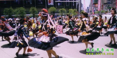 亞宜帶領(lǐng)眾人迎敵,戰(zhàn)斗了三天三夜,終因寡不敵眾向西撤退,得到貴州苗族支持,同官家周旋了一年。第二年四月八亞宜和貴州英雄亞努等人戰(zhàn)死在貴陽城。從那時起,“四月八”就成了青年男女聯(lián)歡節(jié)和祭祀英雄的紀念日。盡管歷代統(tǒng)治階級都以各種借口加以禁止,而具有反抗精神的苗族人民,只是改變了跳花的形式,仍然保留著聚會對歌內(nèi)容。一年一次,世代相傳,知道民國時期各地才先后中斷。后于一九八一年國家民委批示統(tǒng)一在京的苗族過“四月八”而才得到恢復(fù)。一九八六年在鳳凰上下落朝井鄉(xiāng)龍?zhí)梁哟澹?ldquo;四月八”的發(fā)源地舉行隆重聚會。這一天啟明星才掛在樹尖尖上的時候,湘黔邊境各地的男女青年,身著節(jié)日的盛裝,踏著路邊毛草上的露珠,唱著歌,吹著木葉,嘻嘻哈哈,迎著燦爛的朝露,從各條彎彎的山道上,向“跳花溝”涌來。十嶺八坡,山溝里外,龍河兩岸都站滿了人,熙熙攘攘,熱鬧非凡。會場的正中掛有寬六尺長七尺的淺紅大旗,繡有“四月八”三個大字,兩邊龍鳳圖案,莊嚴古樸,表示歷史悠久和不忘祖先功德。