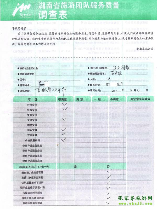 - 游客夏先生為表?yè)P(yáng)導(dǎo)游李姣姣寫(xiě)來(lái)表?yè)P(yáng)信致我張家界... [14811]