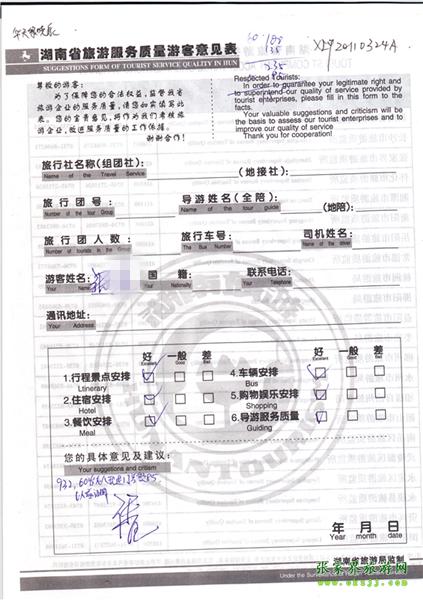 - 2011年11月24日楊先生一行24人旅游質(zhì)量反饋:導(dǎo)游... [9737]