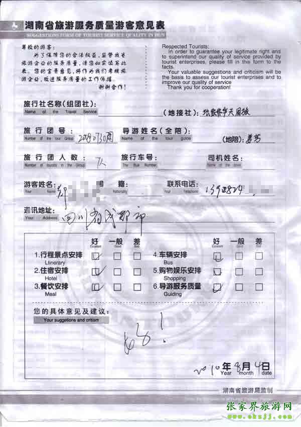 2010年8月4日成都鄭先生一行7位貴賓旅游質(zhì)量反饋