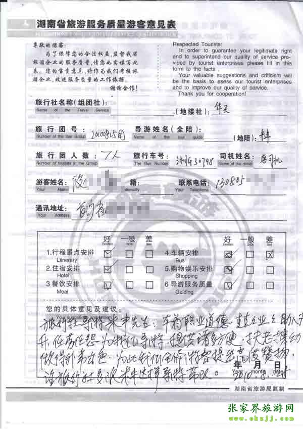 2010年8月25日長沙攸小姐一行7位旅游質量反饋:導游特別優(yōu)秀