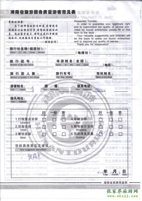 - 游客夏先生為表揚導(dǎo)游李姣姣寫來表揚信致我張家界... [14811]