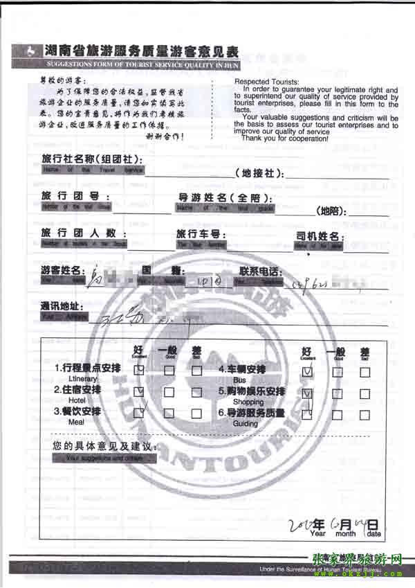 - 6月25日福建邵先生一行12人質(zhì)量反饋單