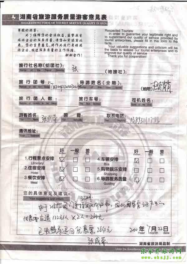 - 游客夏先生為表揚(yáng)導(dǎo)游李姣姣寫來表揚(yáng)信致我張家界... [14811]