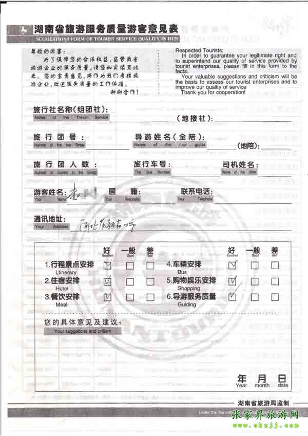 - 游客夏先生為表揚導(dǎo)游李姣姣寫來表揚信致我張家界... [14811]