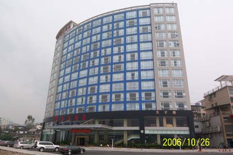 張家界華天大酒店是一家豪華的涉外旅游酒店,由張家界唯讀房地產(chǎn)開發(fā)有限公司投資、由華天集團下轄的湖南華天國際酒店管理公司管理。酒店位于張家界市永定區(qū)回龍路金海岸旅游商業(yè)中心,矗立于碧波寧靜的澧水河畔,與神奇險峻的天門山隔河相望。酒店距火車站、荷花機場10余分鐘車程,距核心景區(qū)30分鐘車程。總占地三萬五千平方米,分天子座、天門座兩棟。兩棟樓分別設(shè)有獨立的總臺服務(wù)、商務(wù)中心、禮賓服務(wù)、餐飲、商場及精品屋等。擁有各類豪華客房305間及風格迥異的中西餐廳、酒吧、多功能會議廳、健身房、棋牌室、電子游戲機室、乒乓球室、臺球、KTV、游泳池、美容美發(fā)中心等。是一家集旅游、商務(wù)、會議、休閑為一體的綜合型酒店。