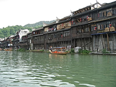 2.沱江人家客棧,和黃永玉畫室一墻之隔,位于虹橋下游奪翠樓邊,因?yàn)橥怀鲆粔K陽臺正對虹橋,下臨回龍?zhí)?,是觀賞虹橋和奪翠樓的絕佳位置,¥20/人(旺季漲到30-40元/人,獨(dú)立衛(wèi)生間24小時(shí)熱水(煤氣熱水器)。主人包忠文,回龍閣13號,電話:0743-3224558.